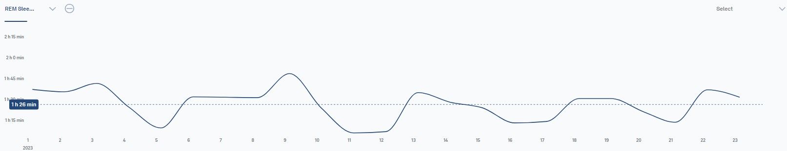 Here are weekly time series line charts of my REM and Deep Sleep from 1st January to 11th June 2023. Sleep consists of different stages. REM and Deep Sleep are two of the sleep stages.