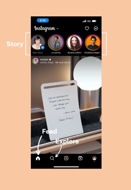 The Instagram Feed is like a personalized gallery of posts from accounts you follow. It's a chronicle of your interests, connections, ads from businesses and suggested accounts that may be interesting and relevant to you.